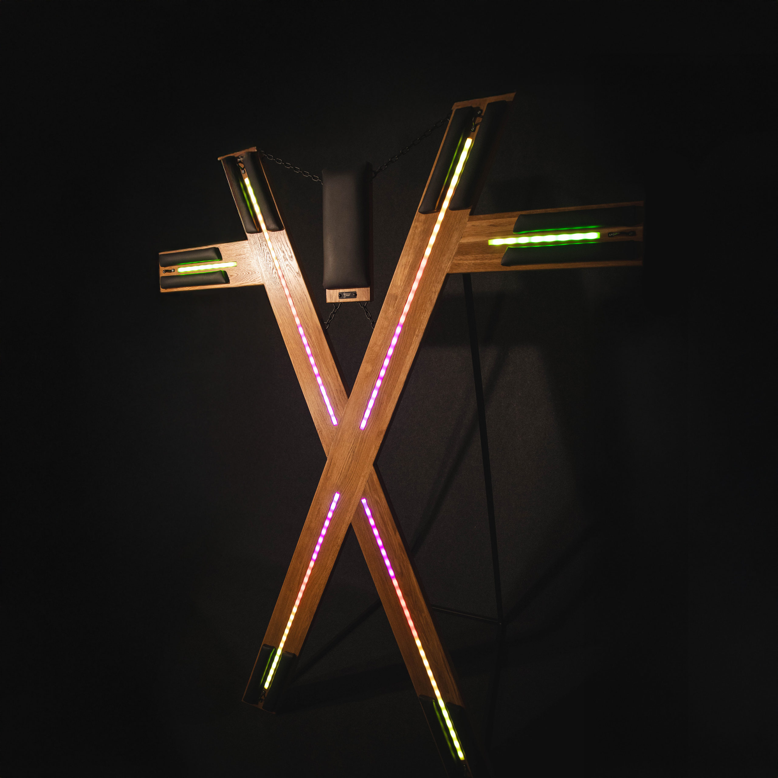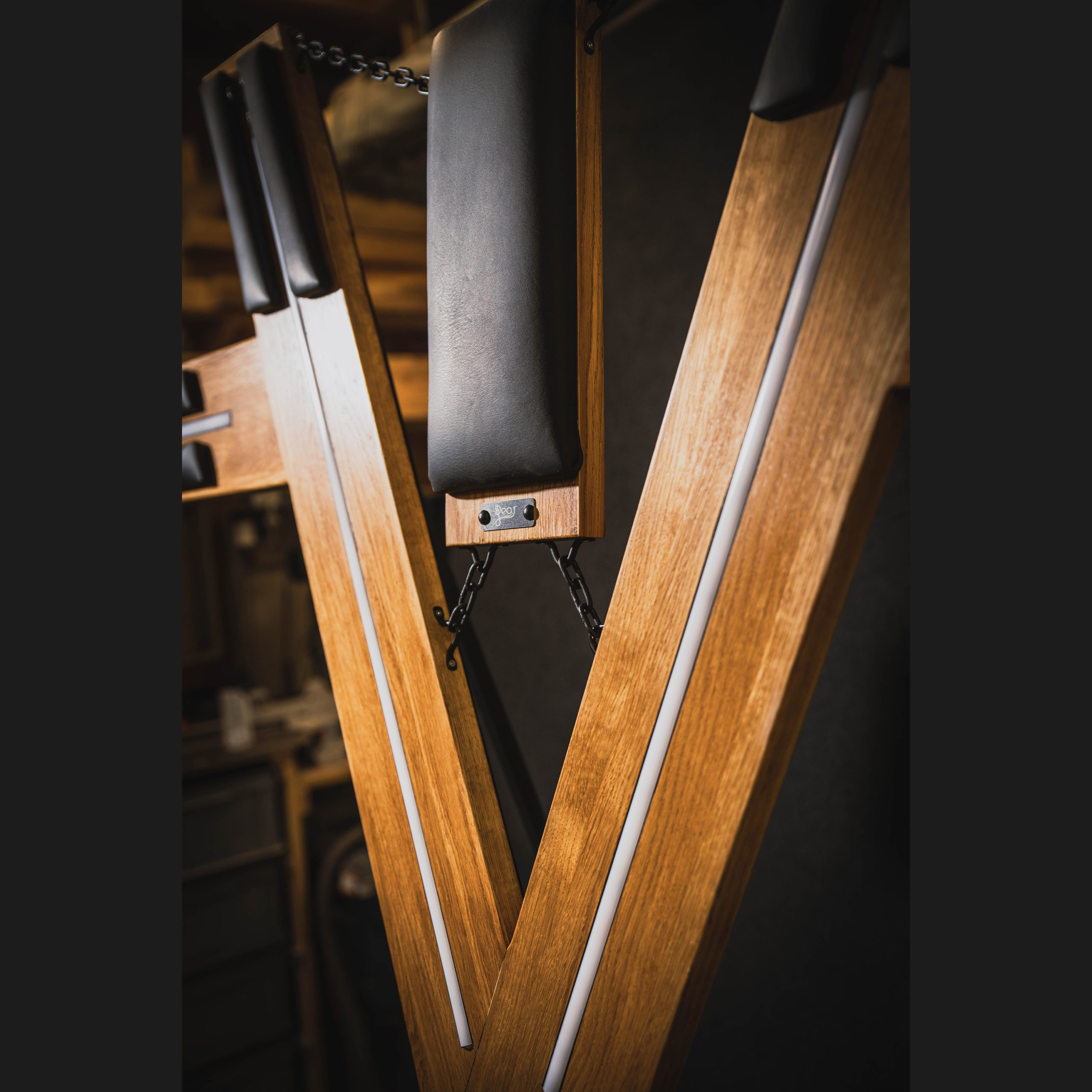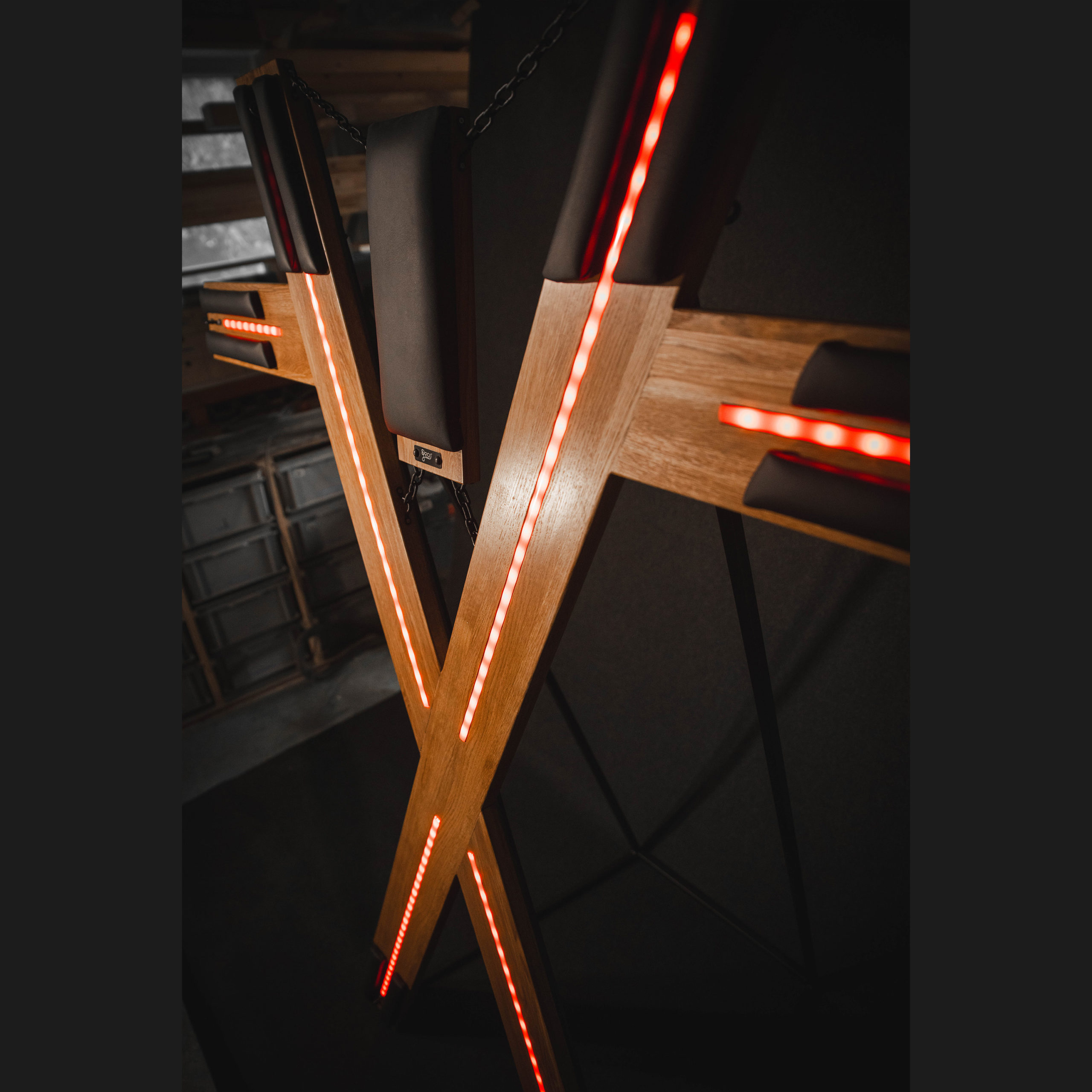 Symbole incontournable, cette croix de Saint-André est ici sublimée par un design à la fois puissant et raffiné. Entièrement réalisée en chêne massif, elle est équipée de coussins en cuir pour un confort optimal et d’une bande LED intégrée au centre, offrant un éclairage saisissant qui magnifie vos instants de jeu.