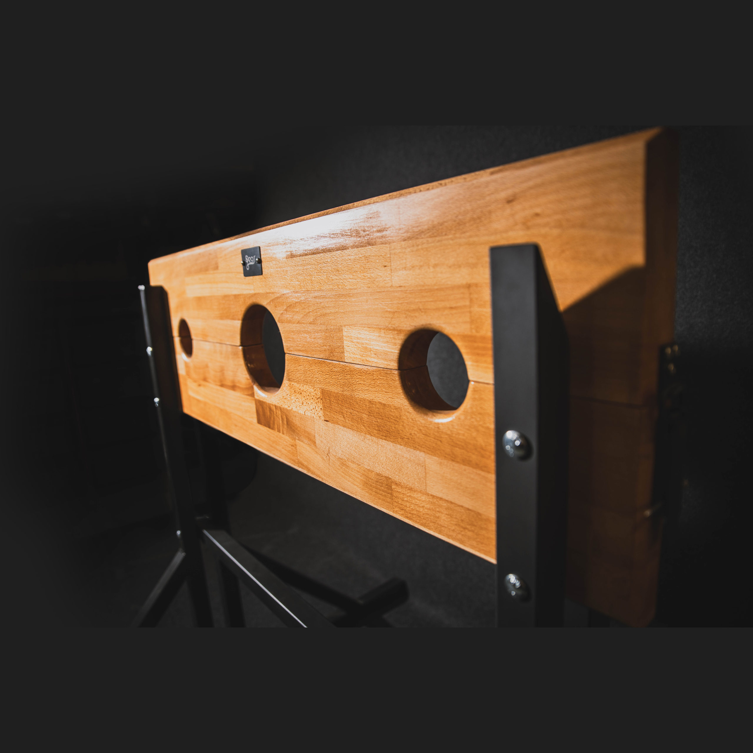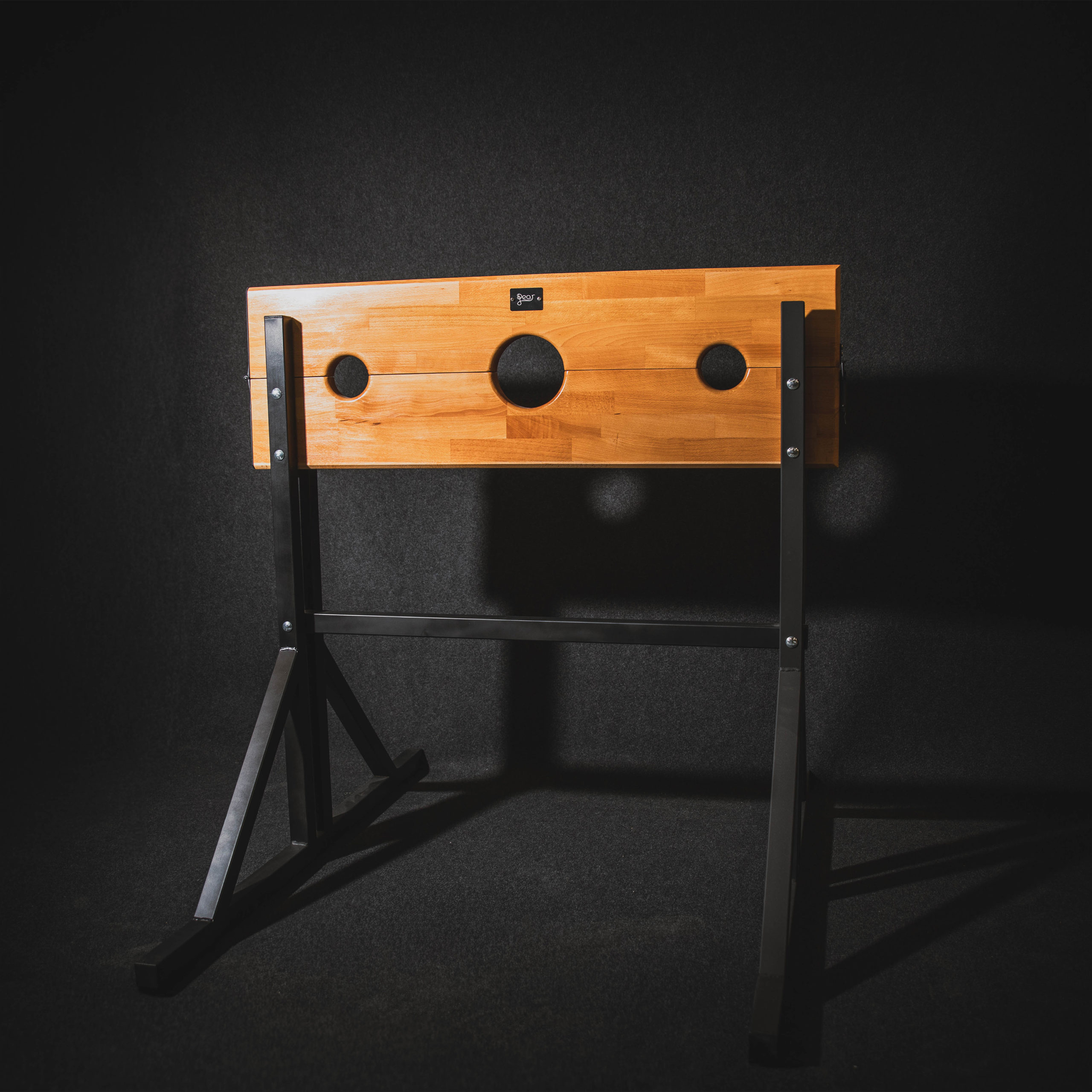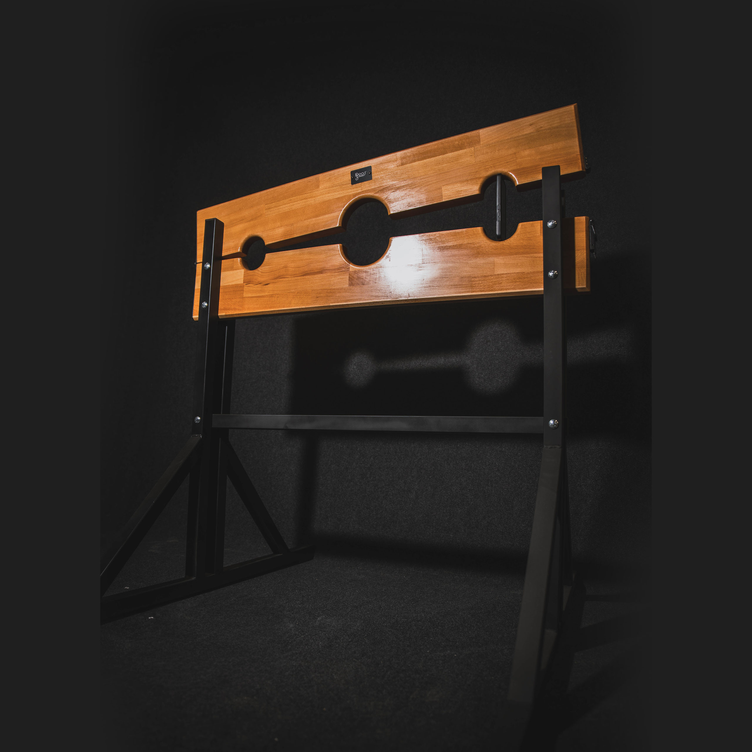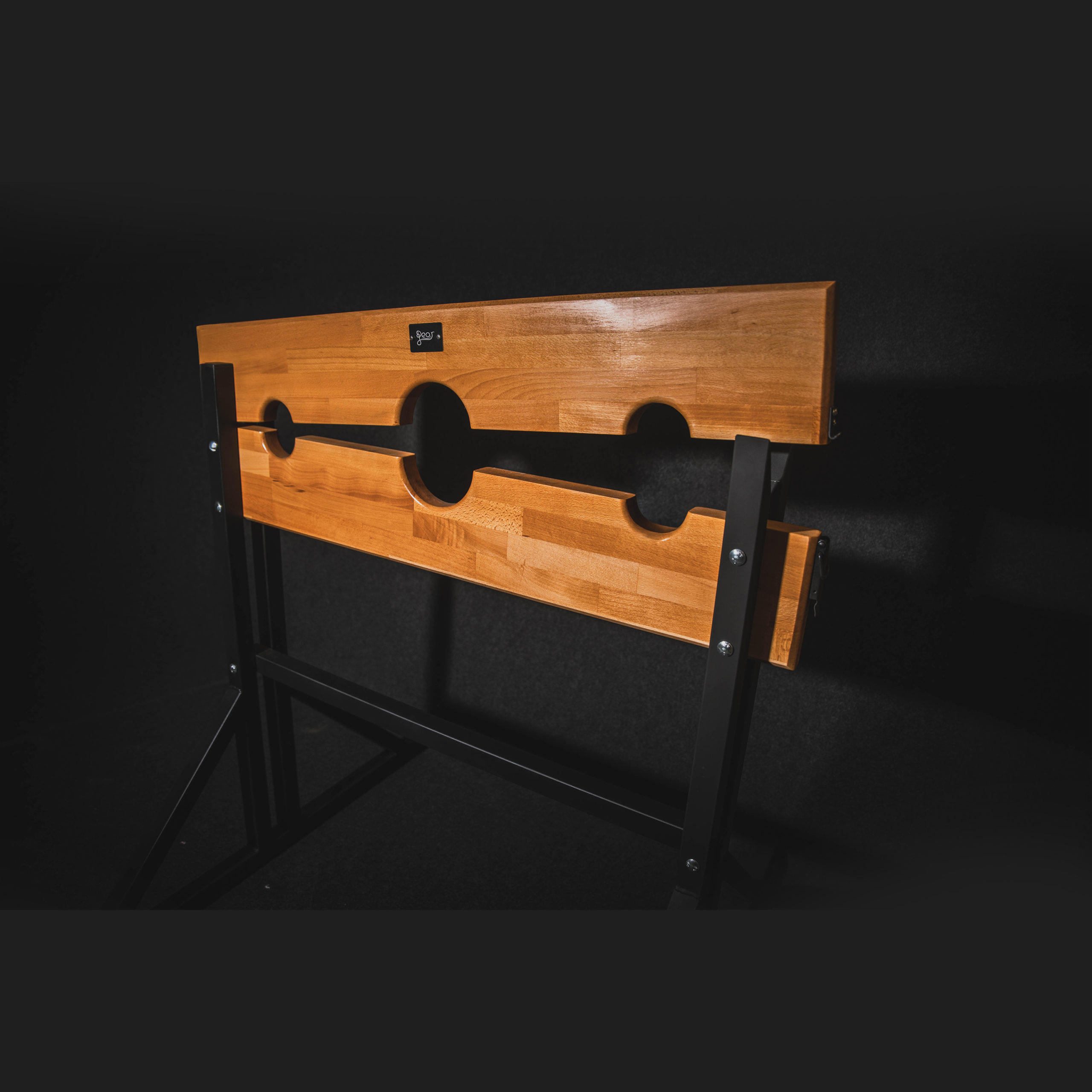 Pièce emblématique de l’univers du jeu et de la contrainte, ce pilori artisanal allie tradition et modernité. Conçu en hêtre massif et renforcé par une structure en acier, il séduit autant par sa robustesse que par son élégance.